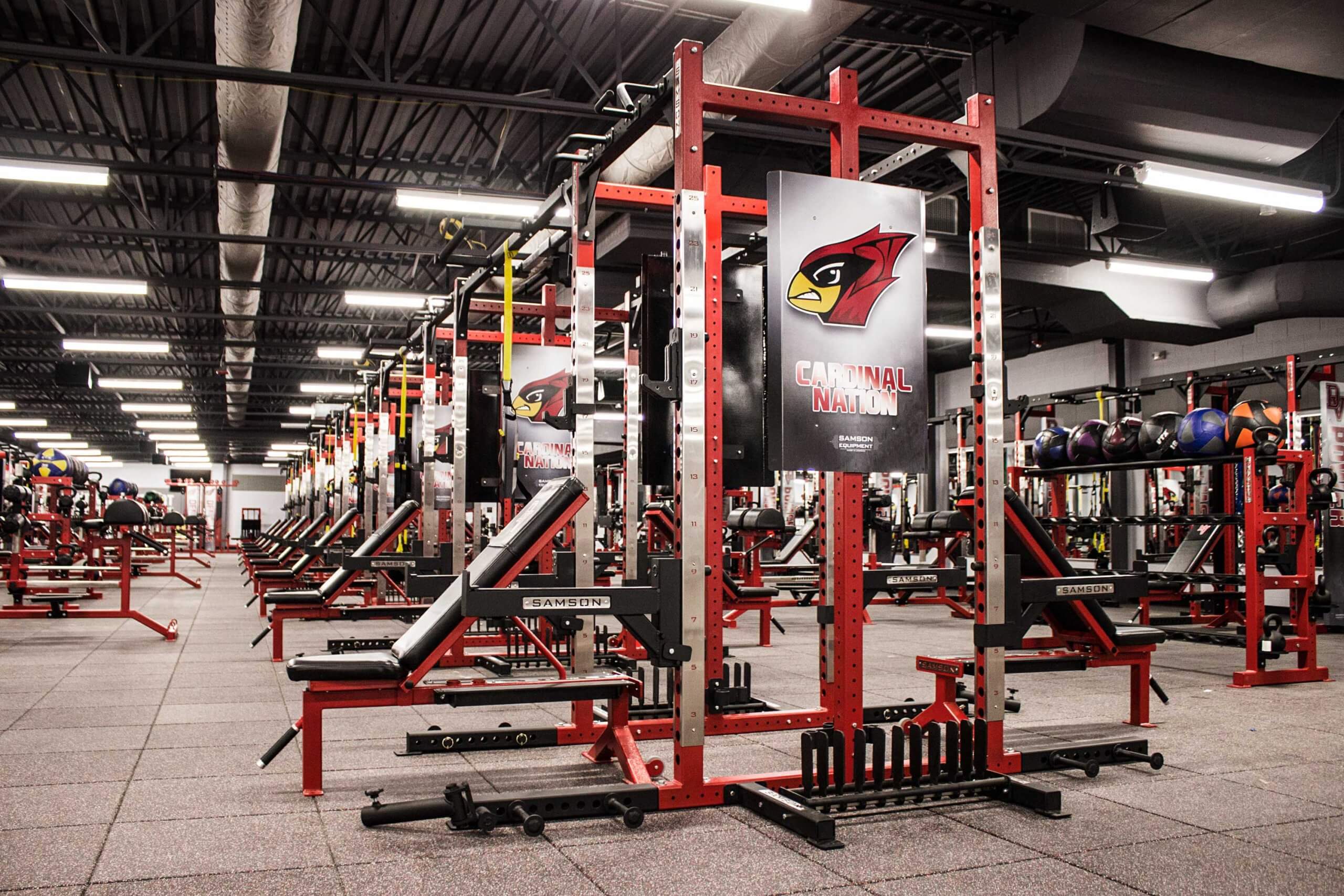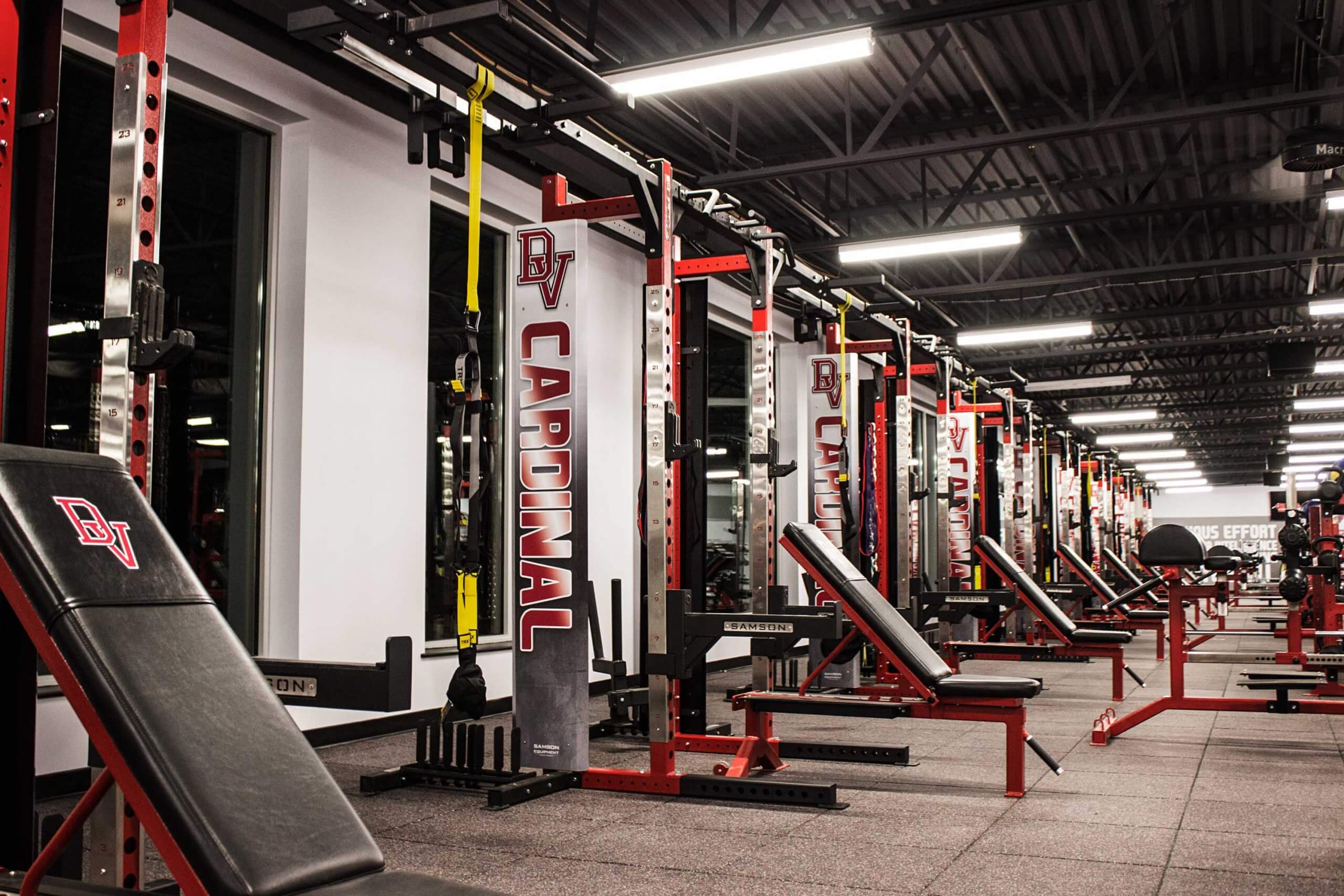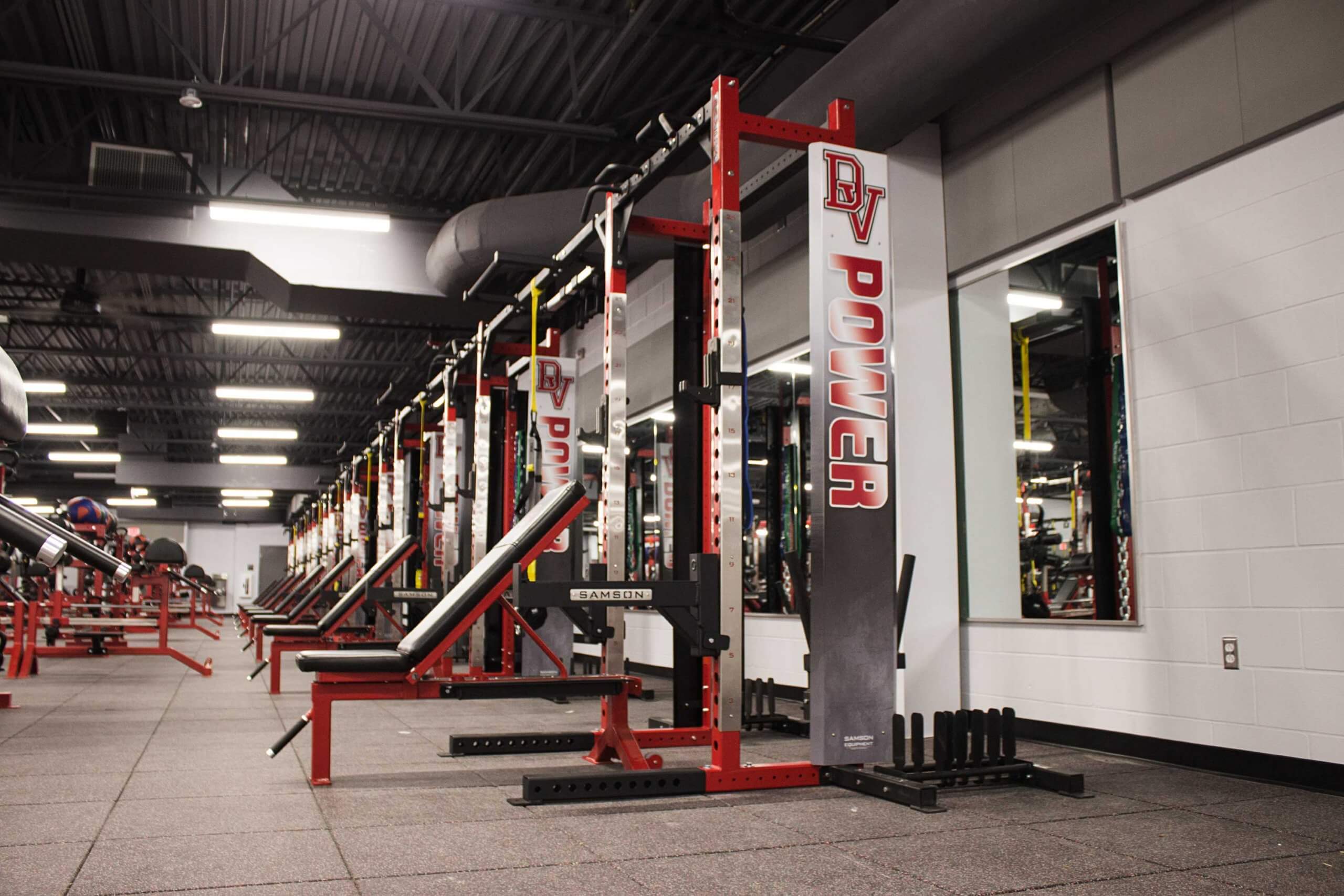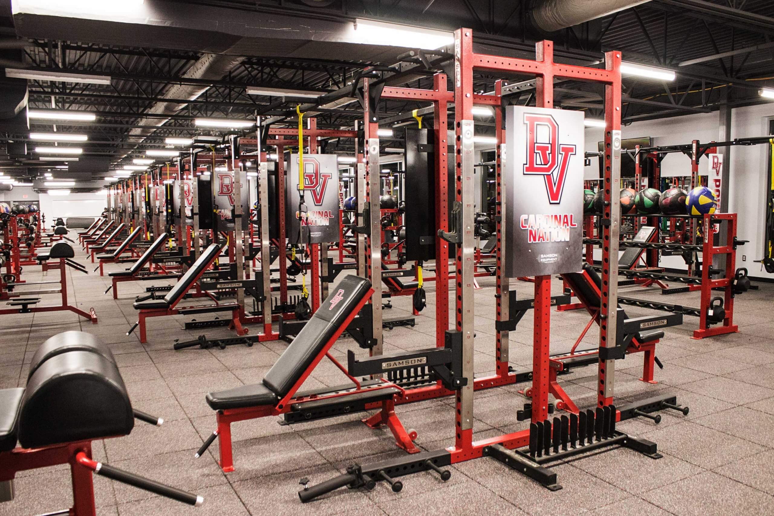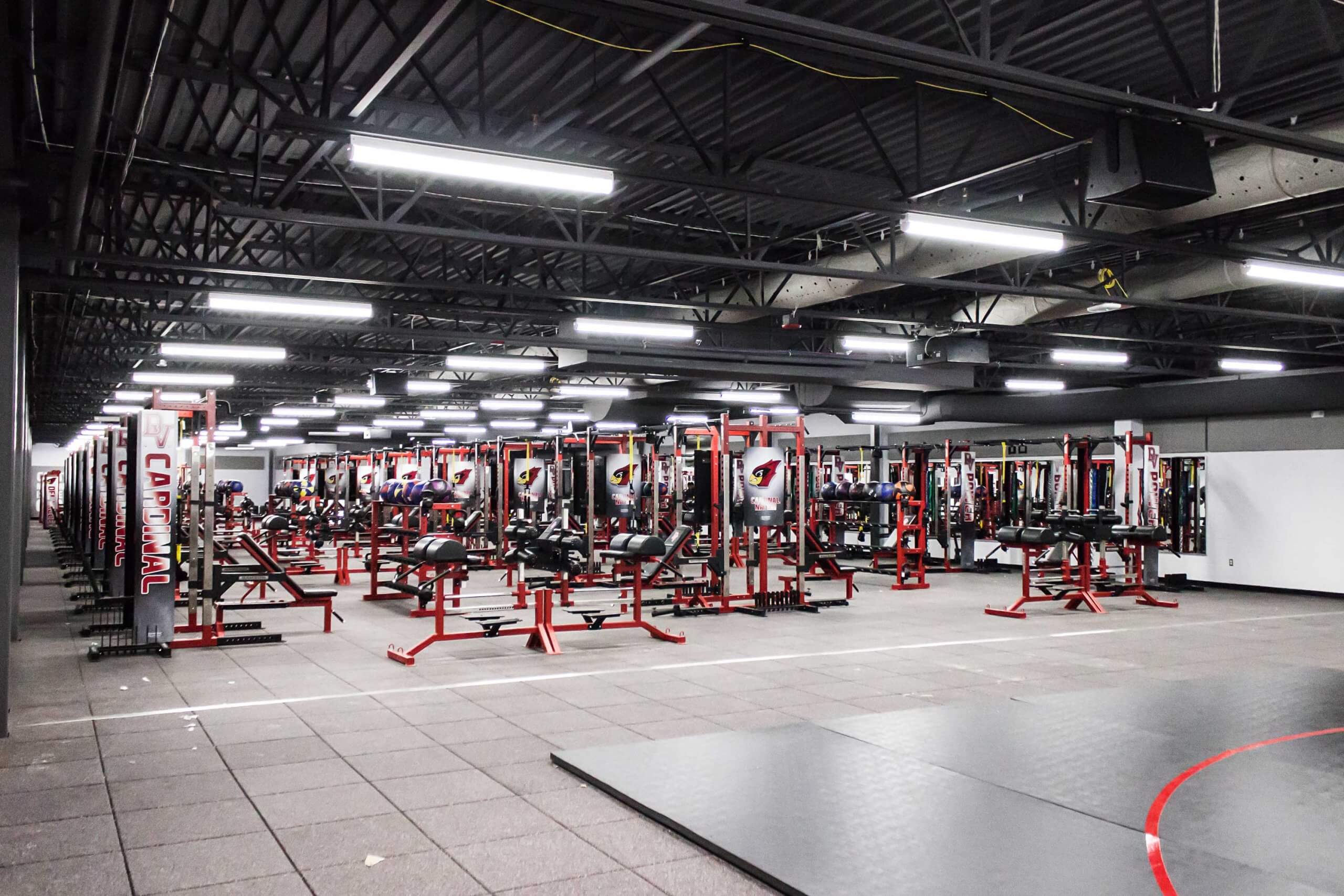 Del Valle High School, located in Austin TX, is now home to one of the finest high school weight training facilities in the country.  Go ahead, we dare you to try and beat this one!  WAY too many custom items to list, but the highlights include Custom Double and Half Racks all linked together with Custom Graphics, Plates, Bumper Plates and Benches, a slew of specialized machines, Custom DB racks to hold Med Balls, KB’s and Custom Logo DB’s and much much more!!