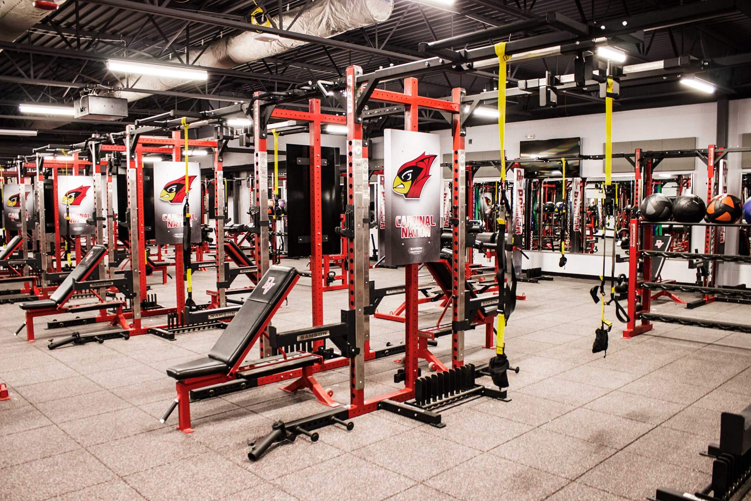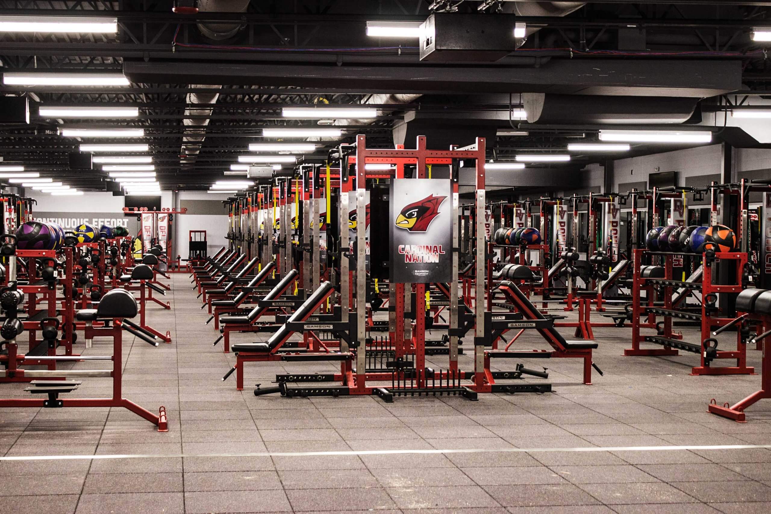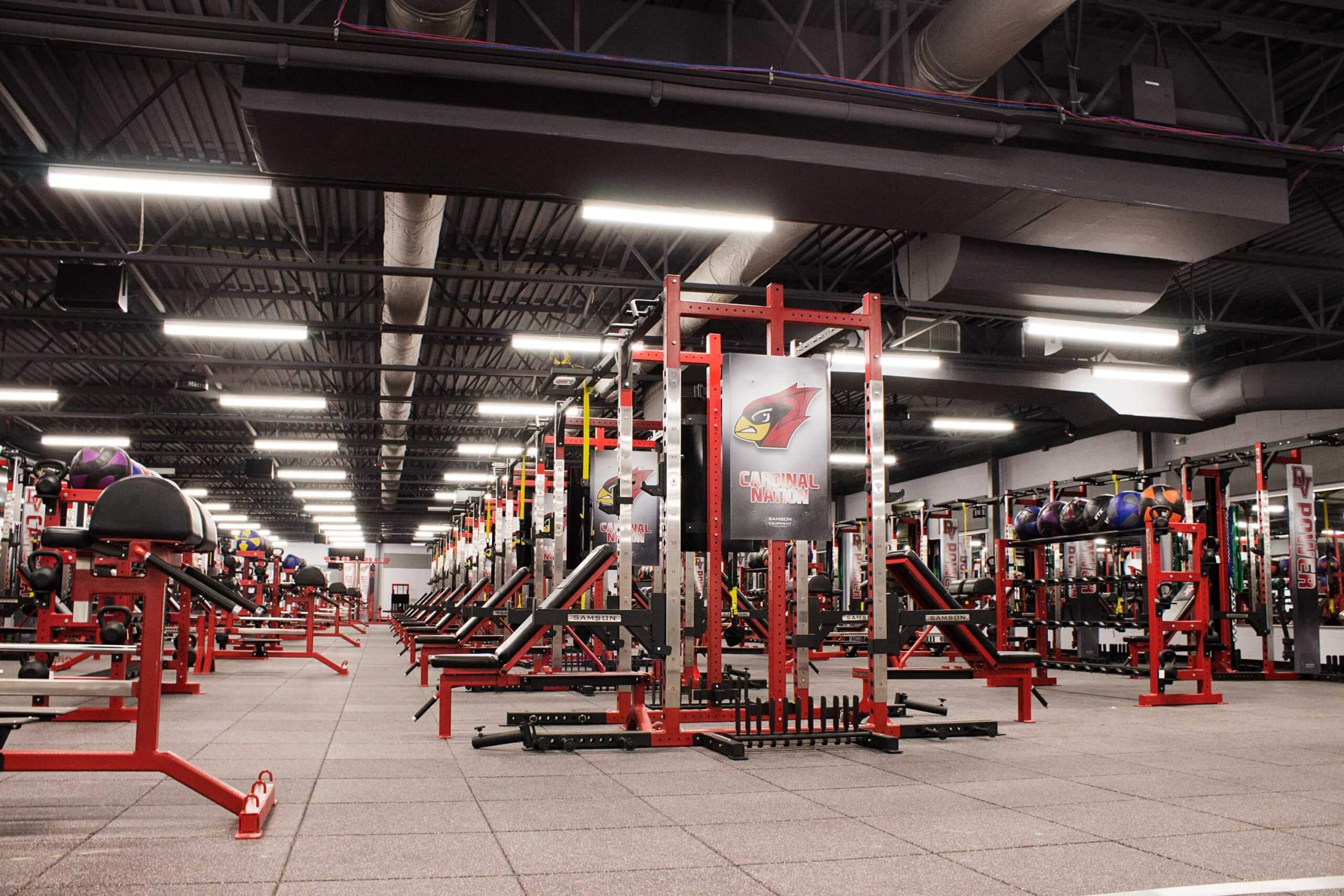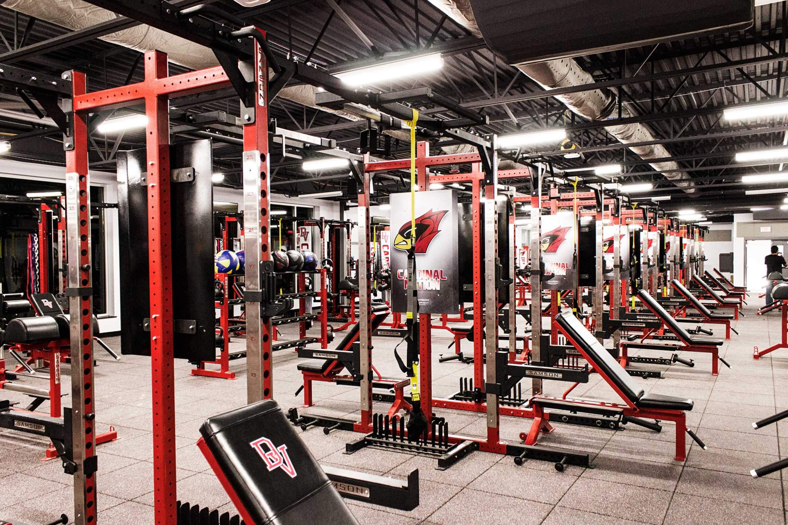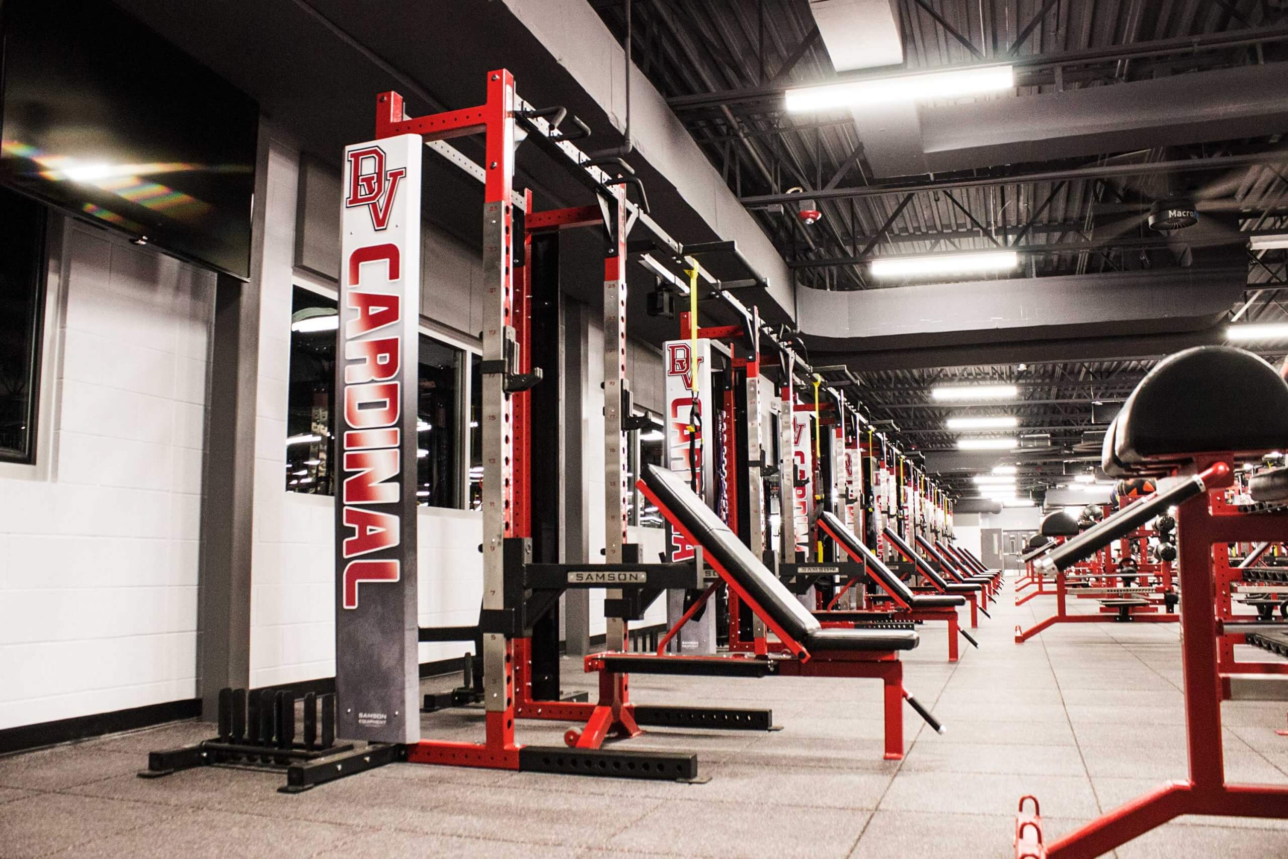 Del Valle High School, located in Austin TX, is now home to one of the finest high school weight training facilities in the country.  Go ahead, we dare you to try and beat this one!  WAY too many custom items to list, but the highlights include Custom Double and Half Racks all linked together with Custom Graphics, Plates, Bumper Plates and Benches, a slew of specialized machines, Custom DB racks to hold Med Balls, KB’s and Custom Logo DB’s and much much more!!