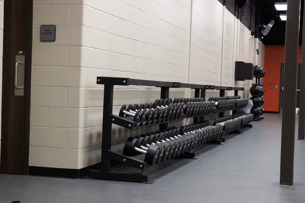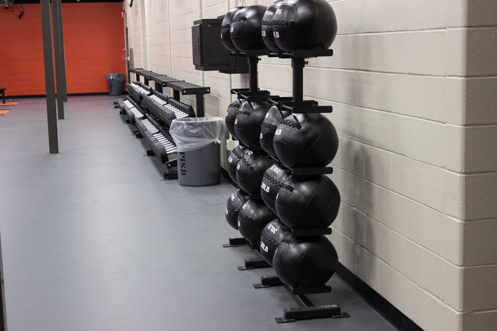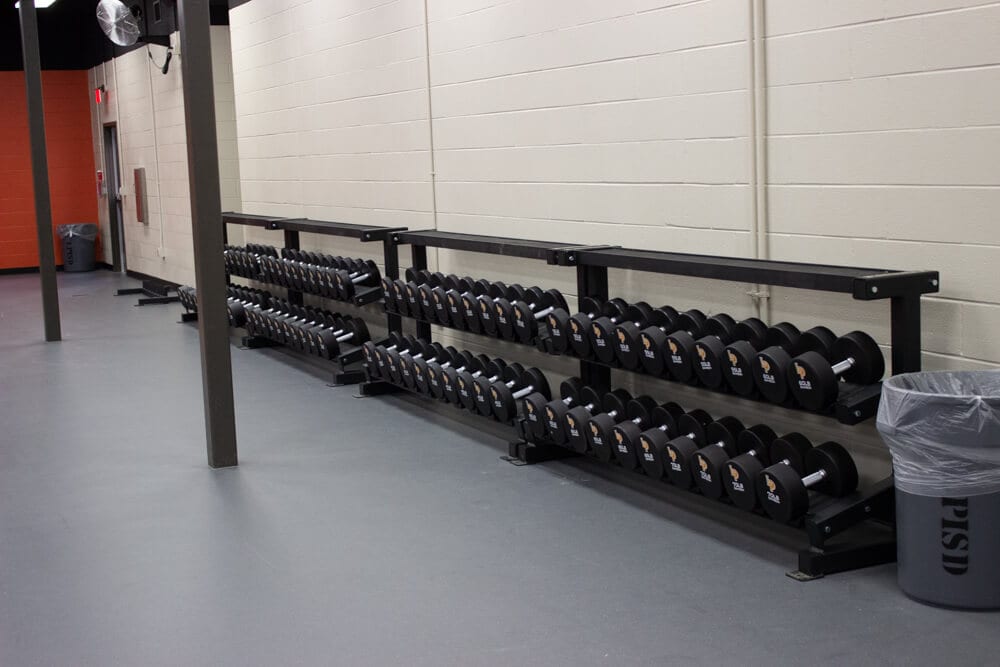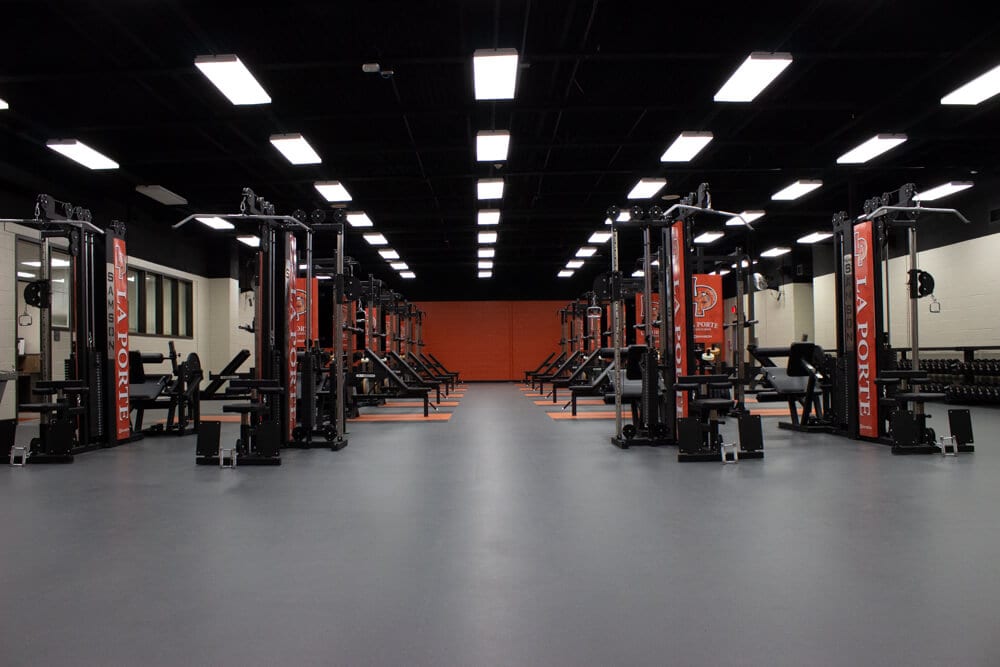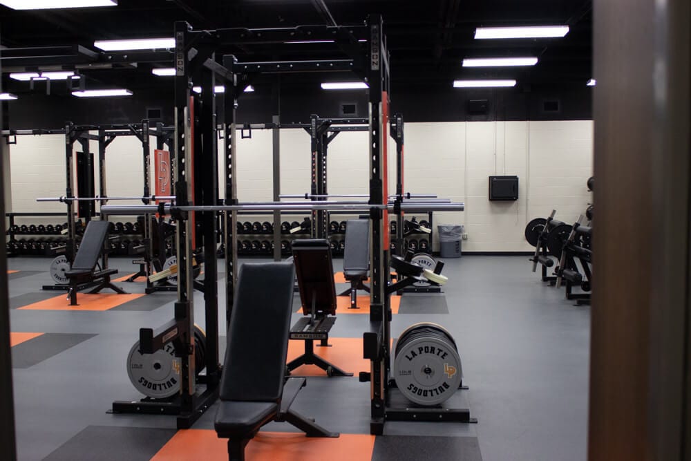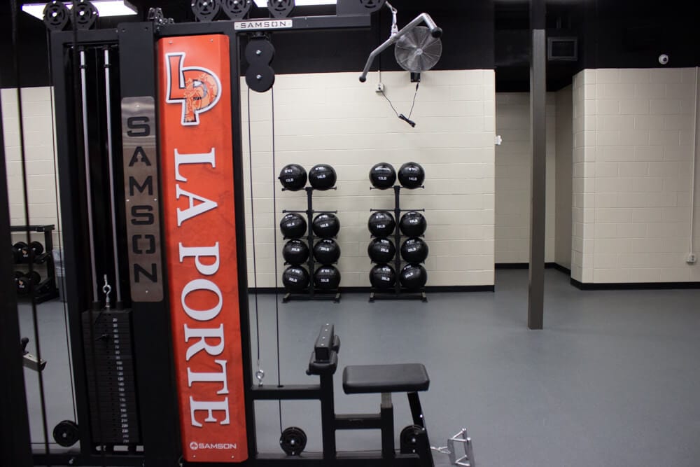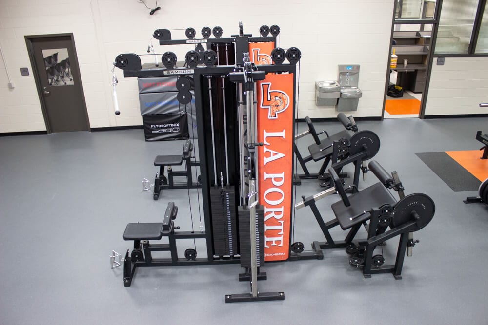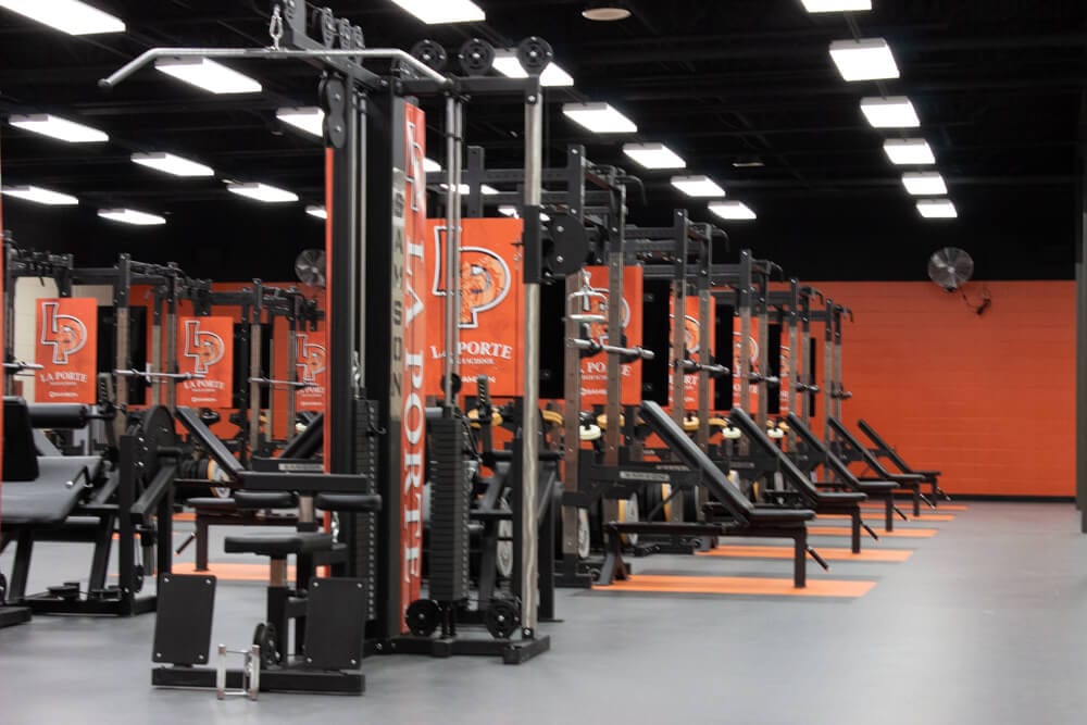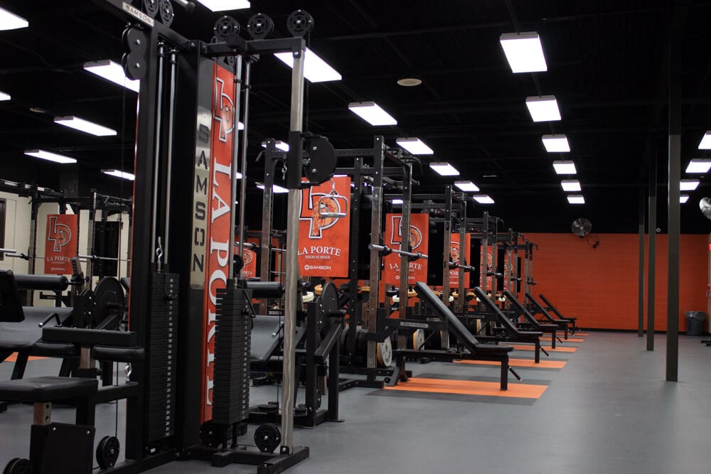 La Porte HS’s new weight training facility is comprised of Custom Double Sided Racks complete with Custom Graphic Panels, Plate Storage, Inlaid Platforms as well as DB Racks, Lat/Row combos w/ Custom Graphics, etc. The Bulldogs are set up for success!! #Samsonstrong