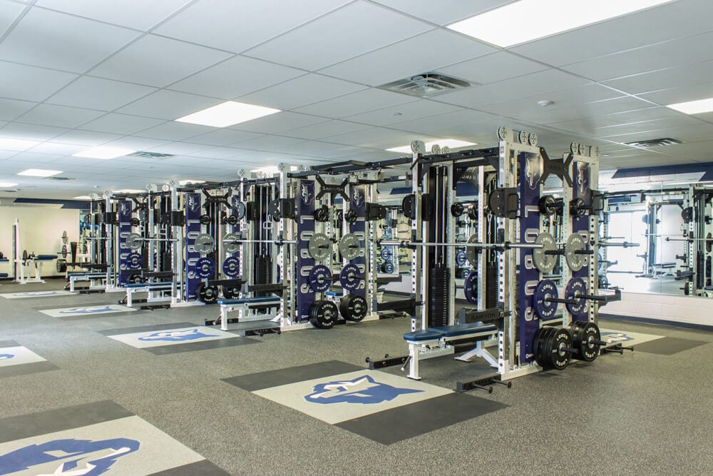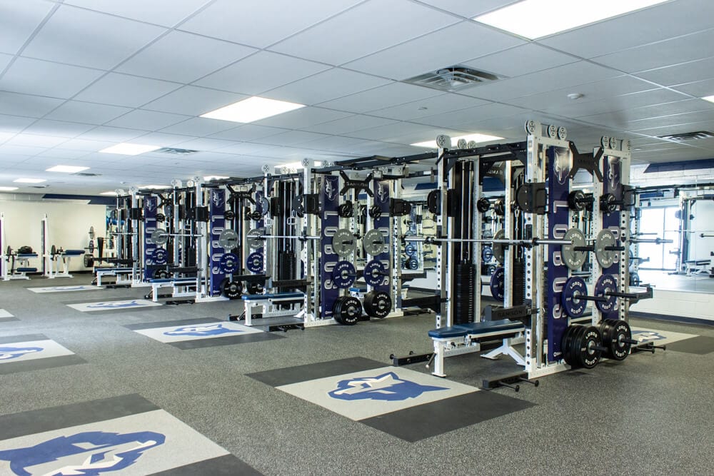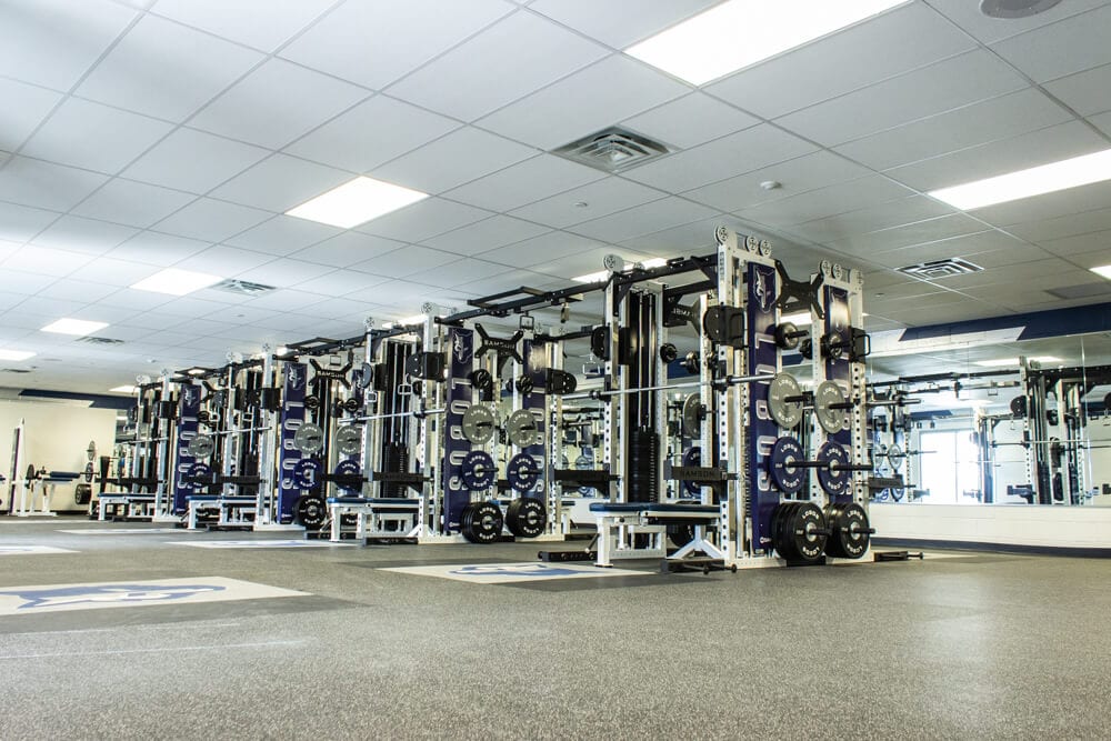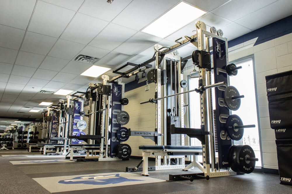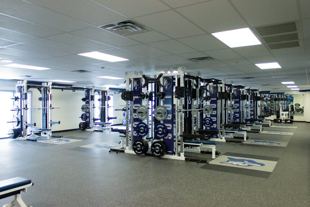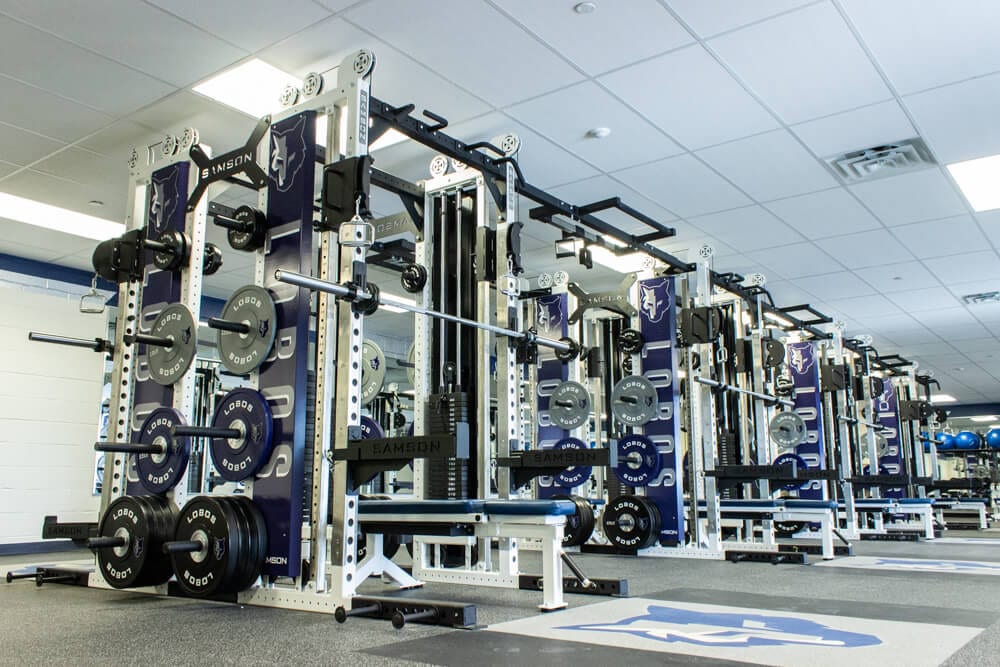Located just outside of El Paso TX stands one of the finest weight training facilities you’ll find! All new Custom Logo Inlaid Platforms, FTR Racks Linked together w/ Custom Graphics, Custom Color/Logo Bumper Plates, Large DB area w/ Custom Logo DB’s, Belt Squats, Various Lower Body Machines, etc. No doubt the Lobos are set up for success for years to come!