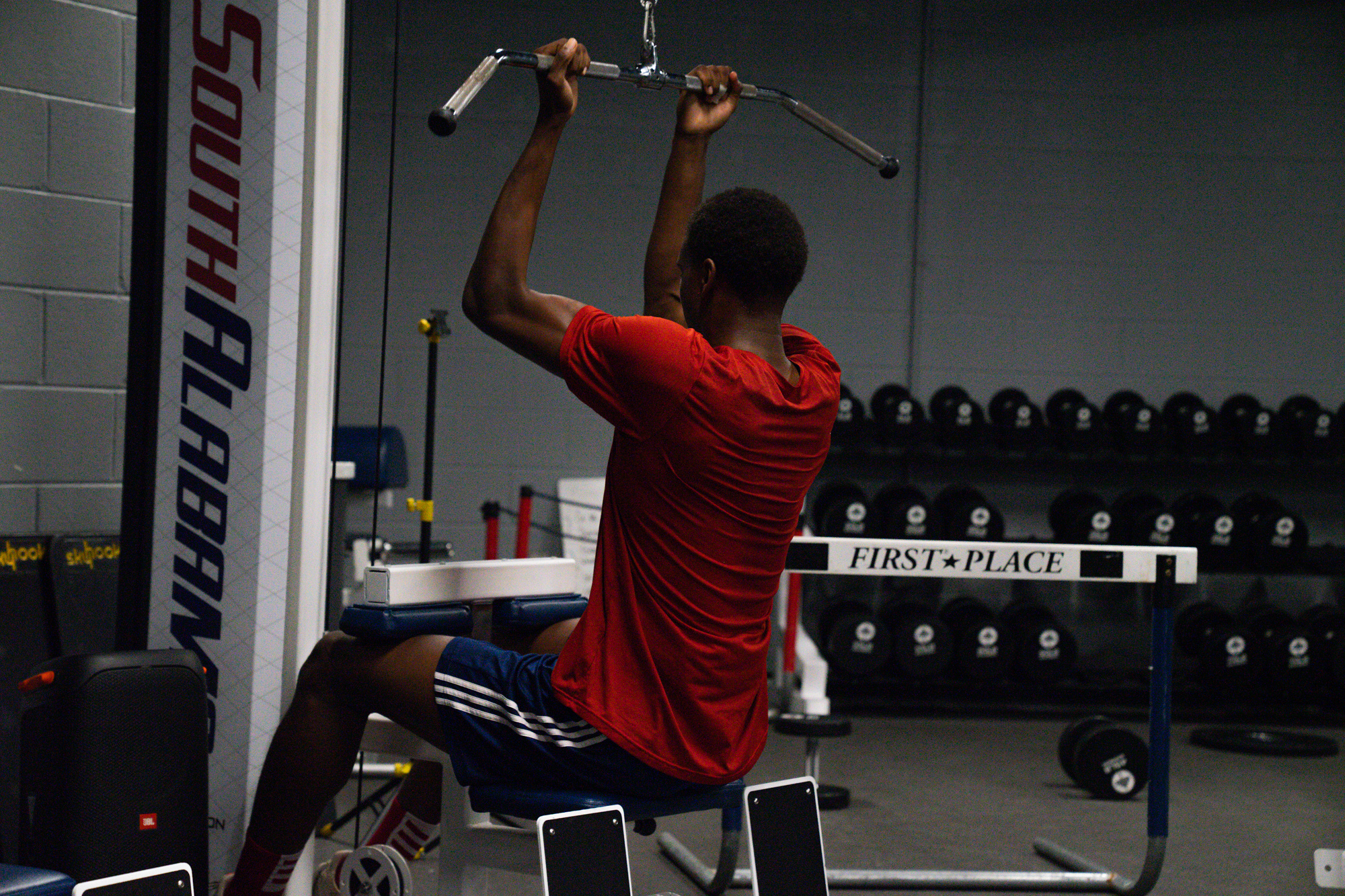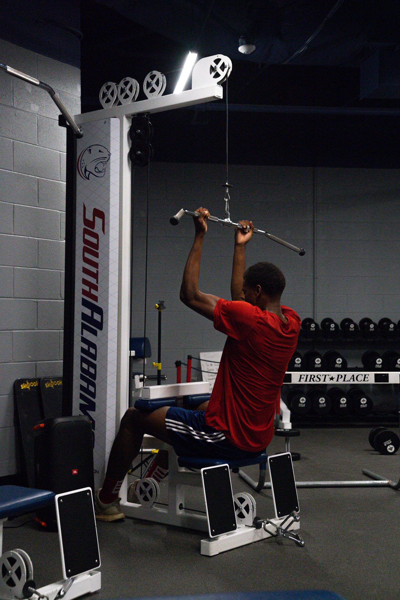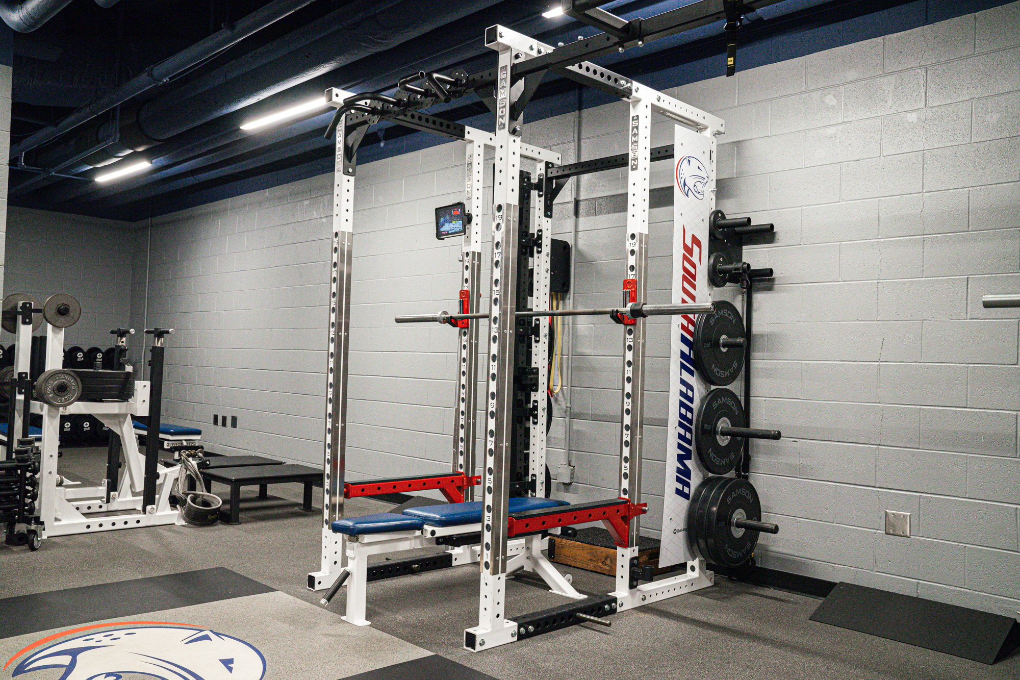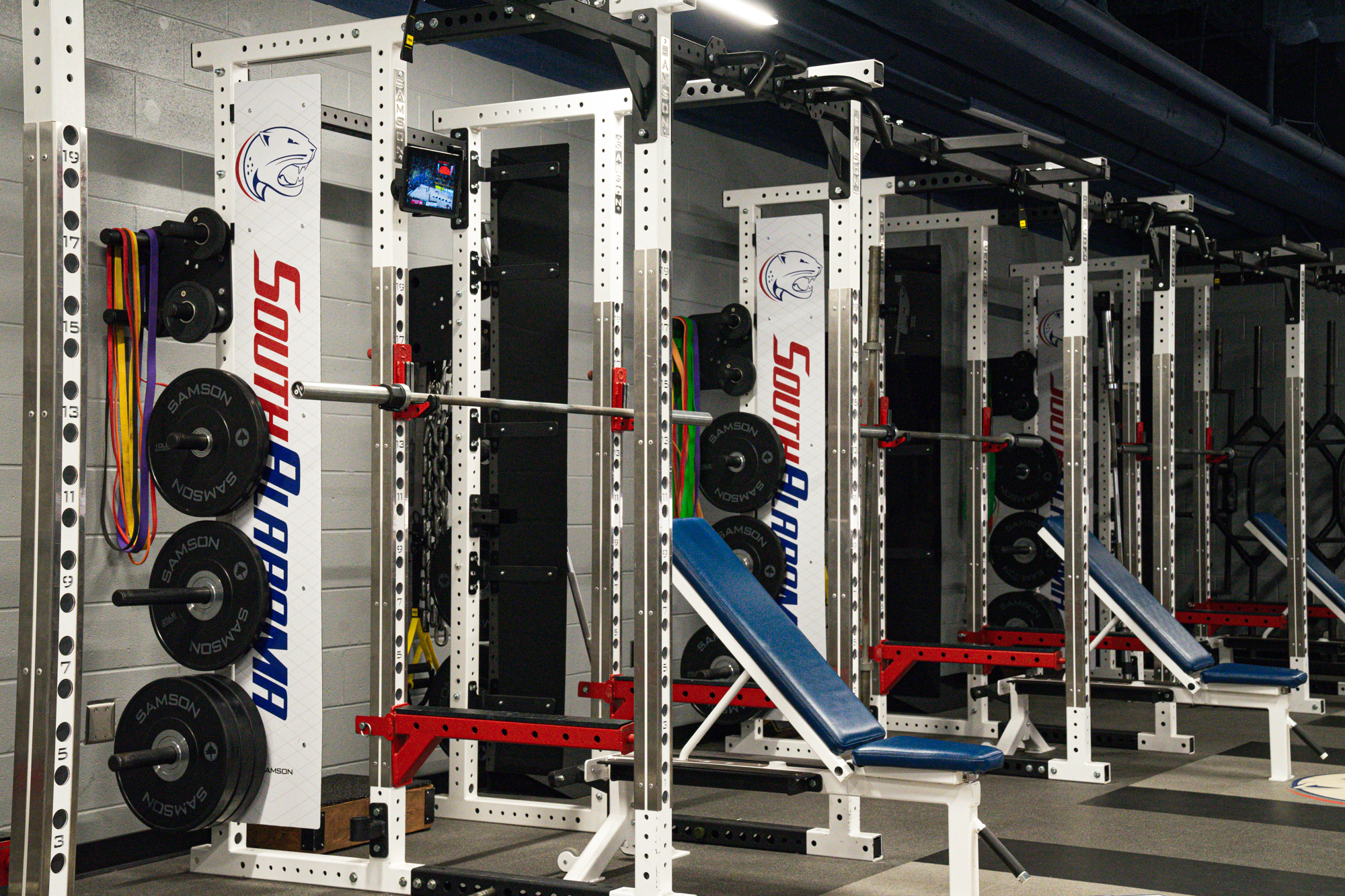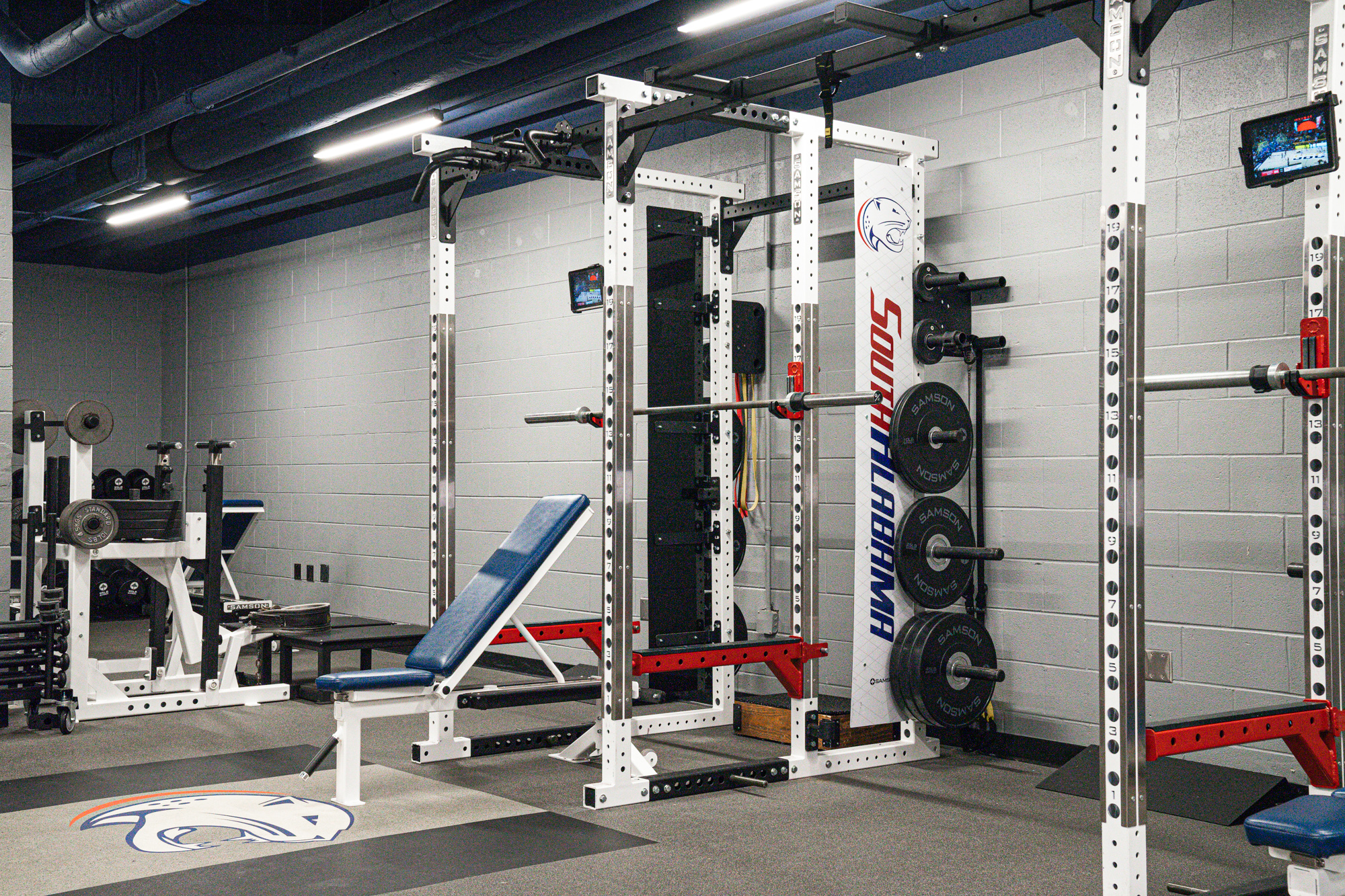 Understanding the constraints posed by a smaller footprint, Samson Equipment has adeptly provided solutions that are not only space-efficient but also multifunctional, ensuring that each piece of equipment can support a wide range of exercises and training protocols. This approach allows the University of South Alabama to offer a comprehensive strength and conditioning program tailored to the unique needs of basketball athletes, all within the confines of a tightly organized space.
