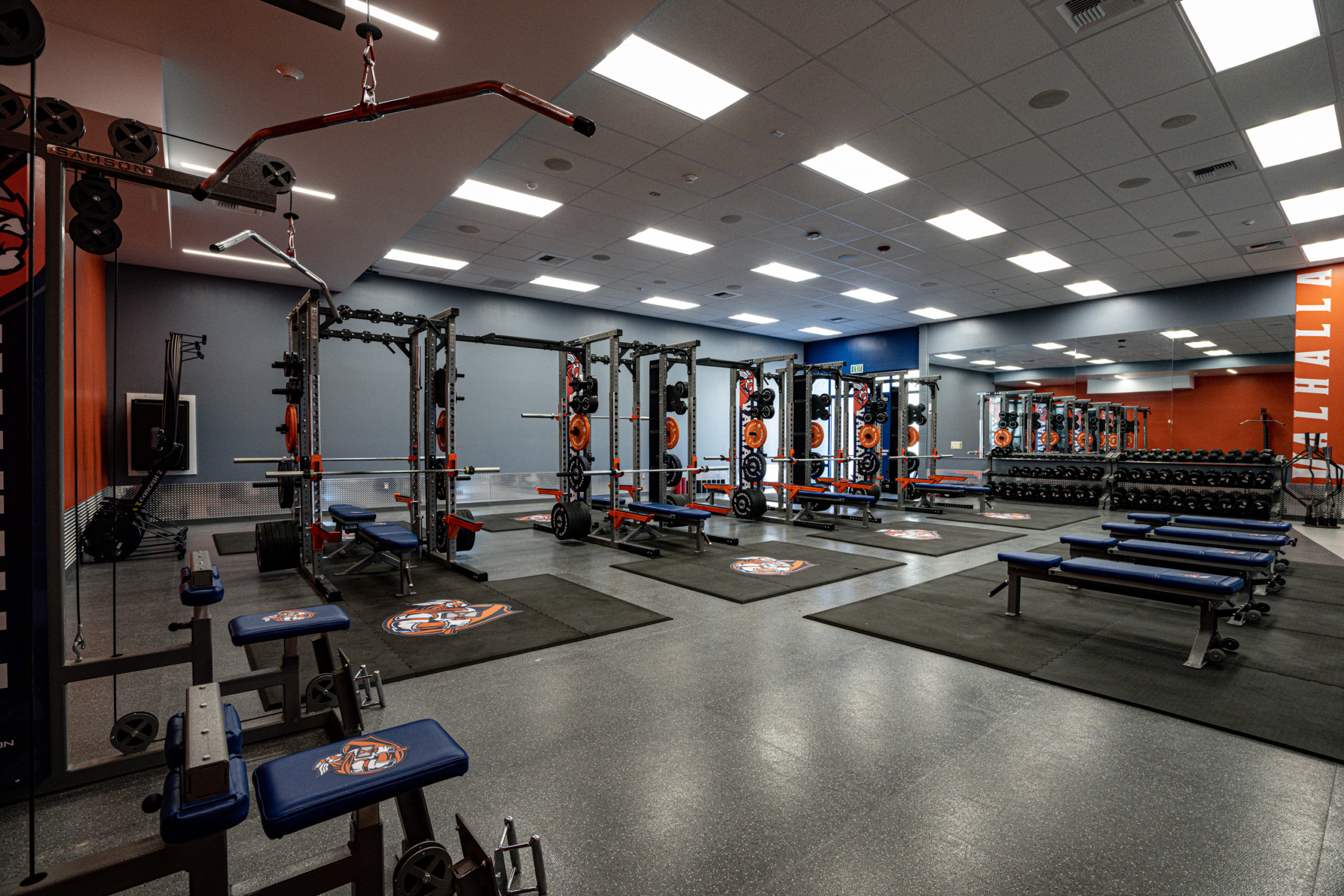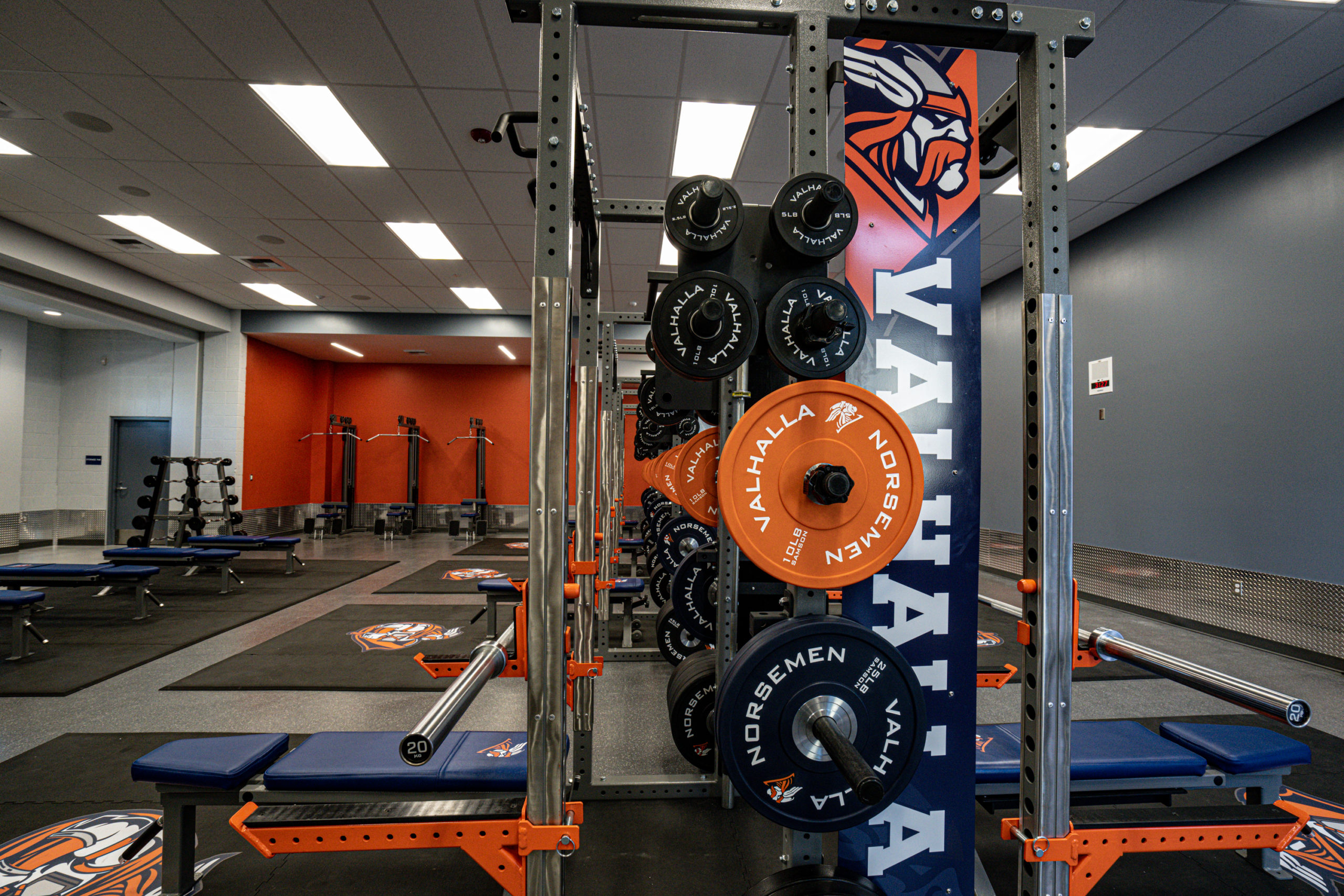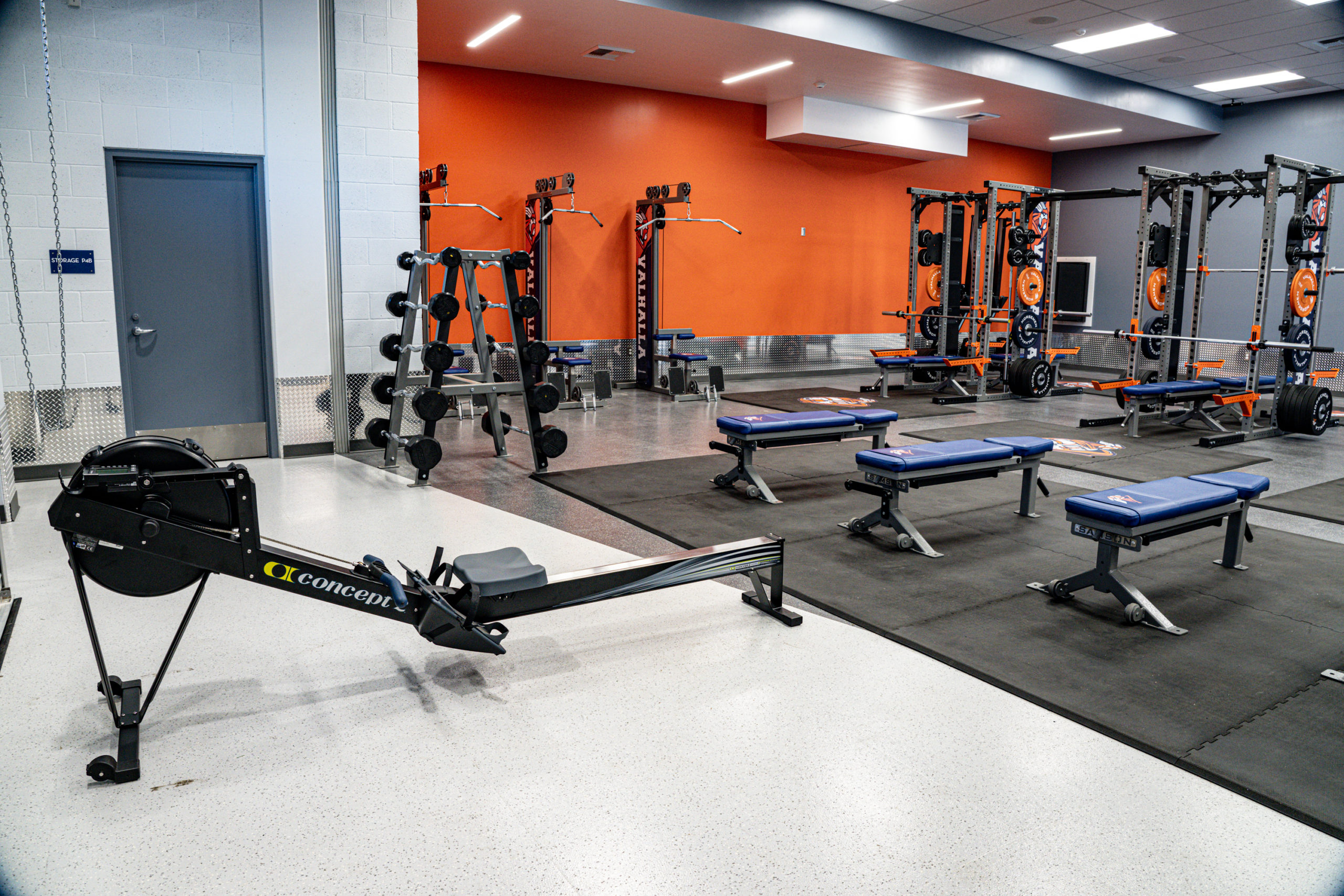 Valhalla High School’s vision was to make a meaningful purchase and do it right. This space was equipped with four Double Sided Flex-Racks complete with linking system, Platforms, twelve combo benches, eight barbells, three Lat-Row Combo Machines, custom Branded Bumper Plates and Dumbbells, fixed barbell and dumbbell storage.