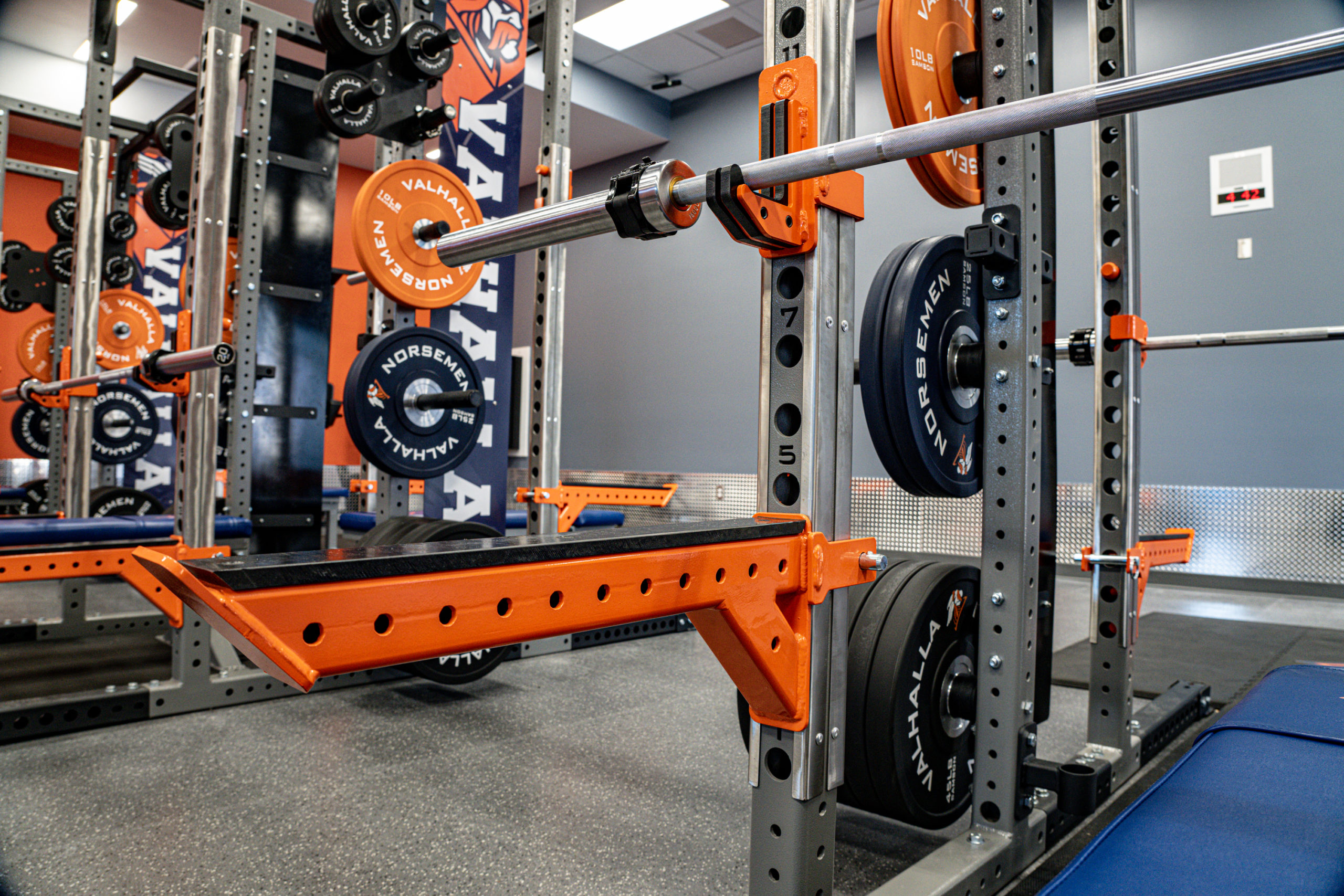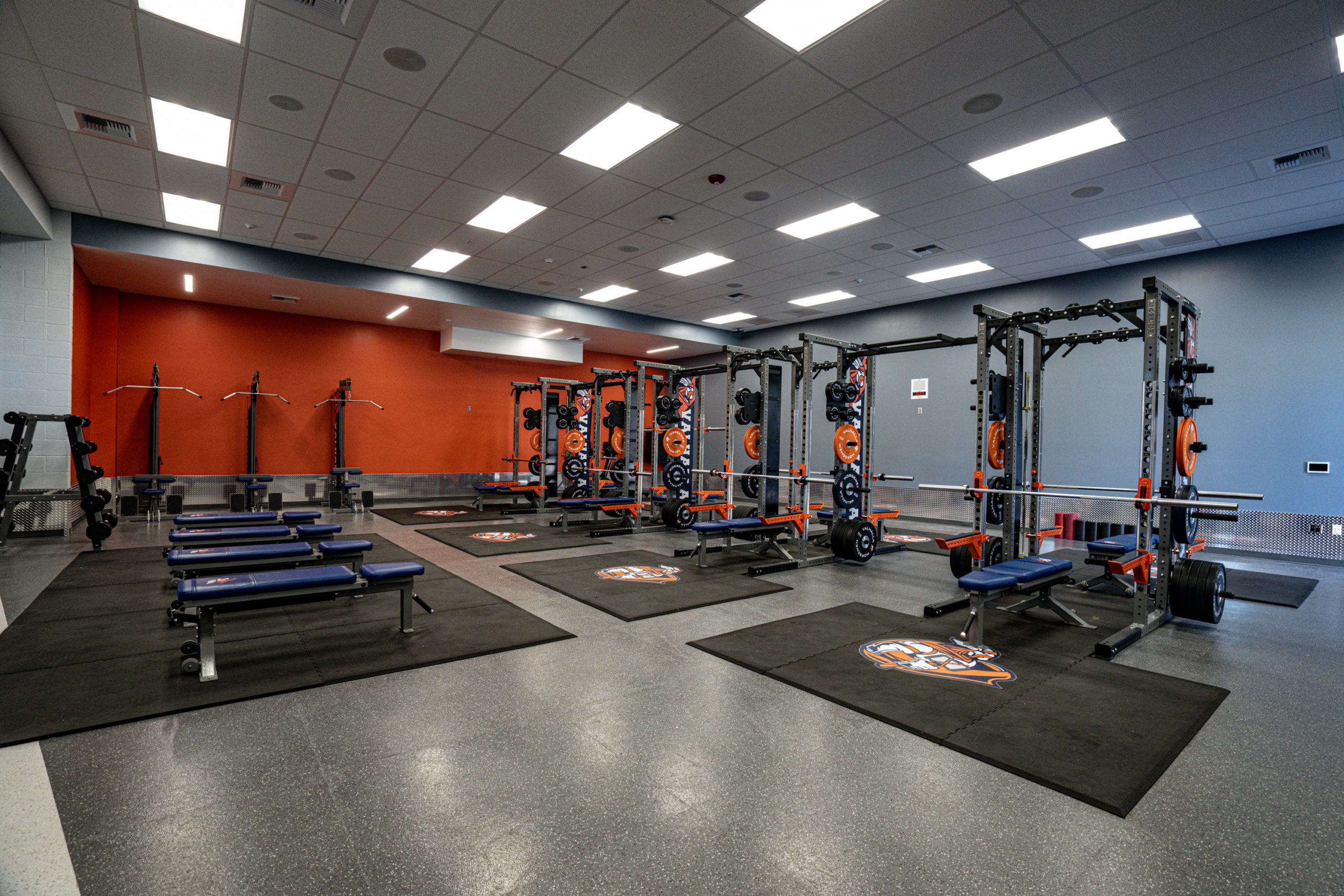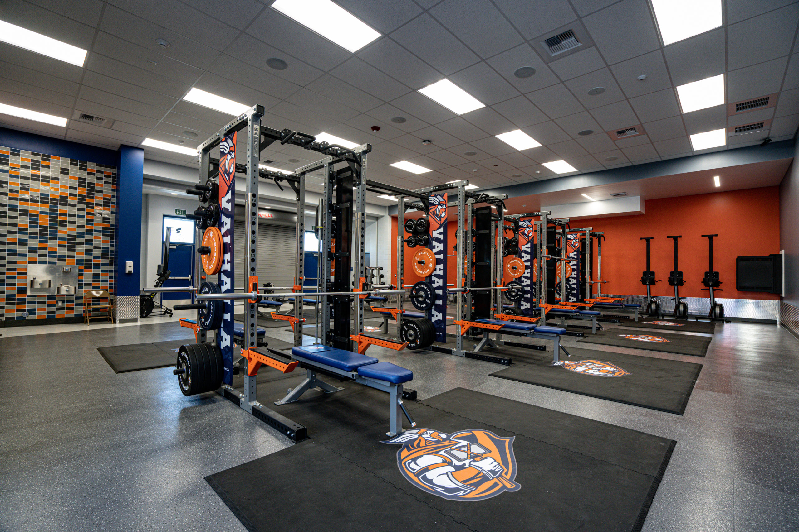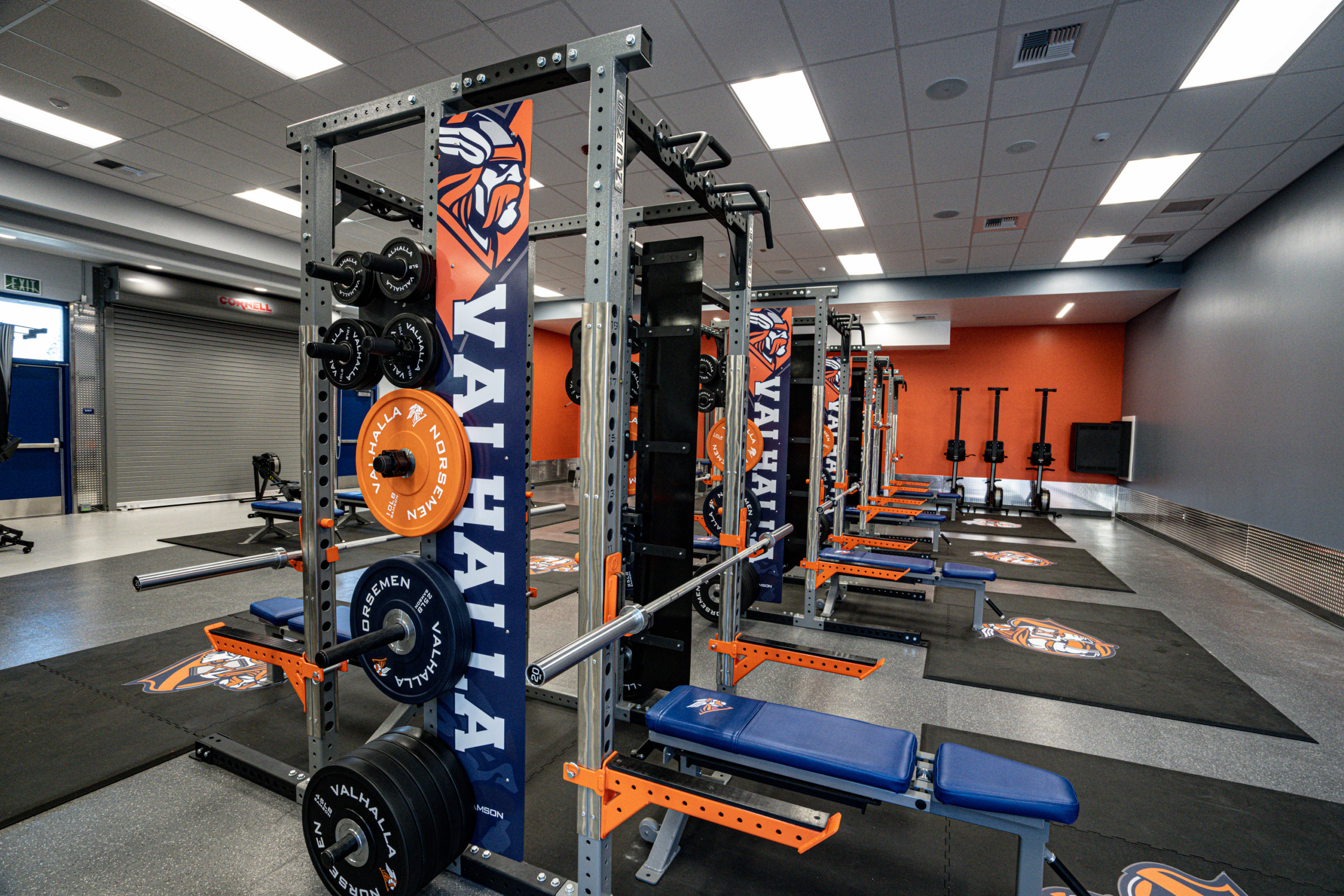 Valhalla High School’s vision was to make a meaningful purchase and do it right. This space was equipped with four Double Sided Flex-Racks complete with linking system, Platforms, twelve combo benches, eight barbells, three Lat-Row Combo Machines, custom Branded Bumper Plates and Dumbbells, fixed barbell and dumbbell storage.