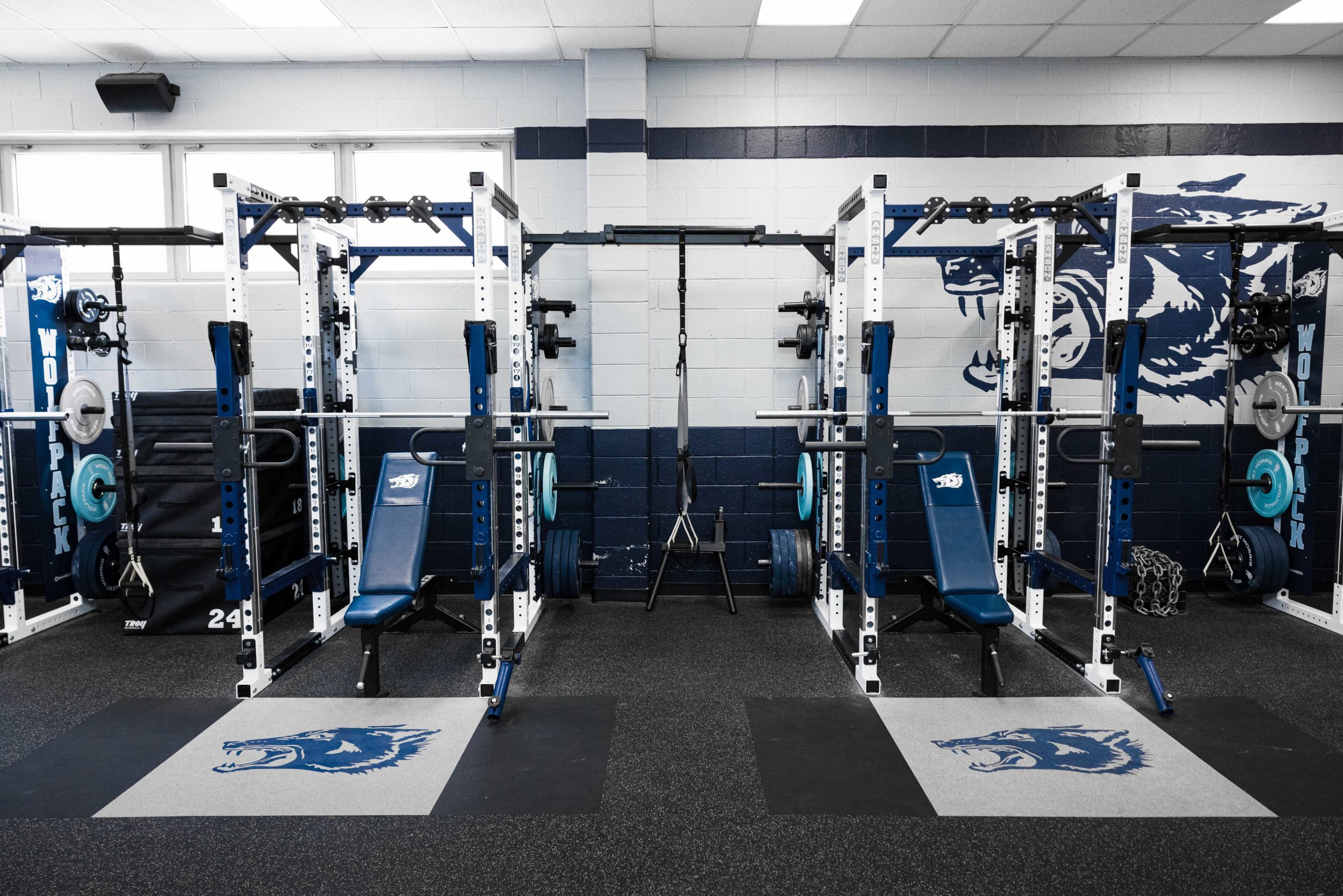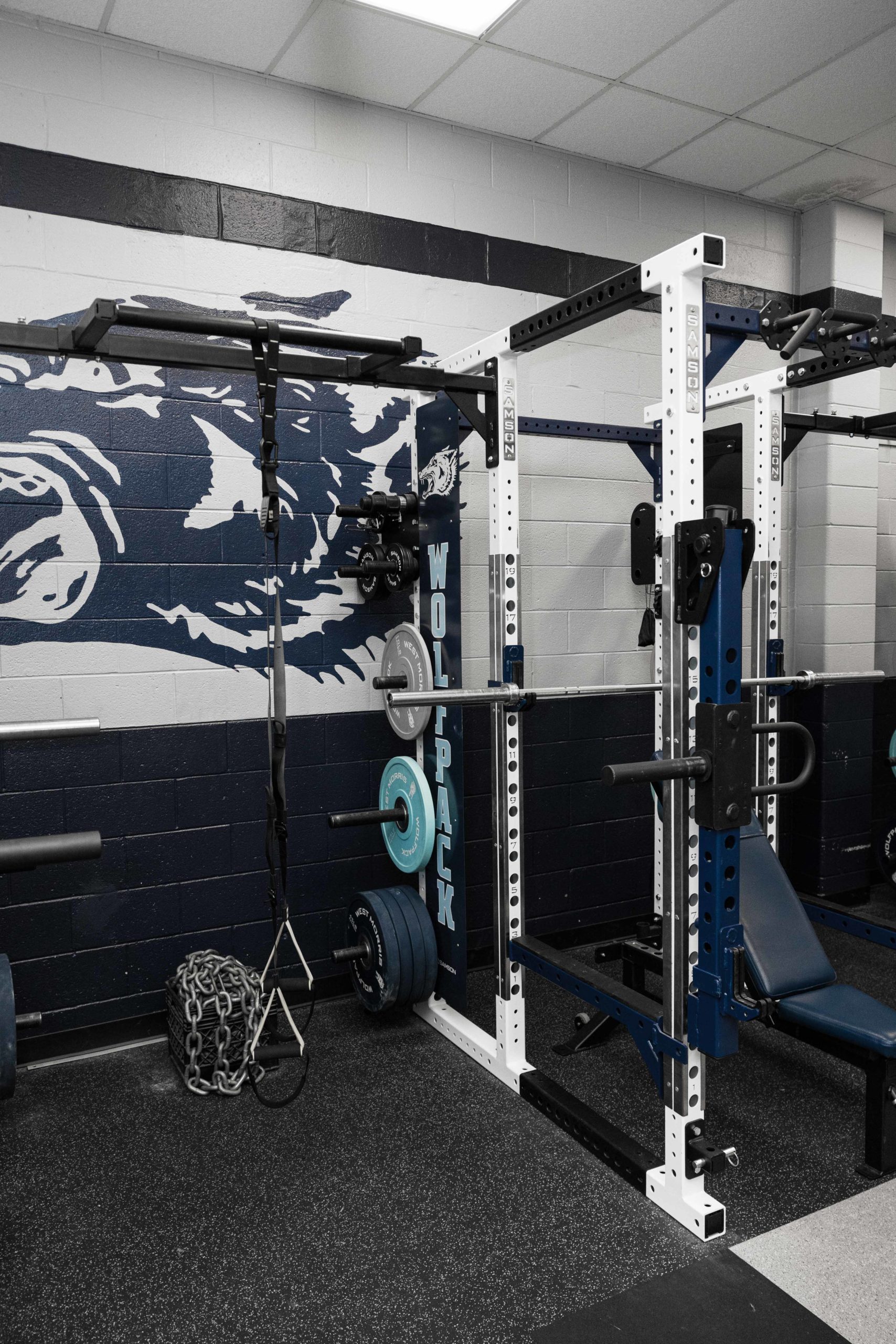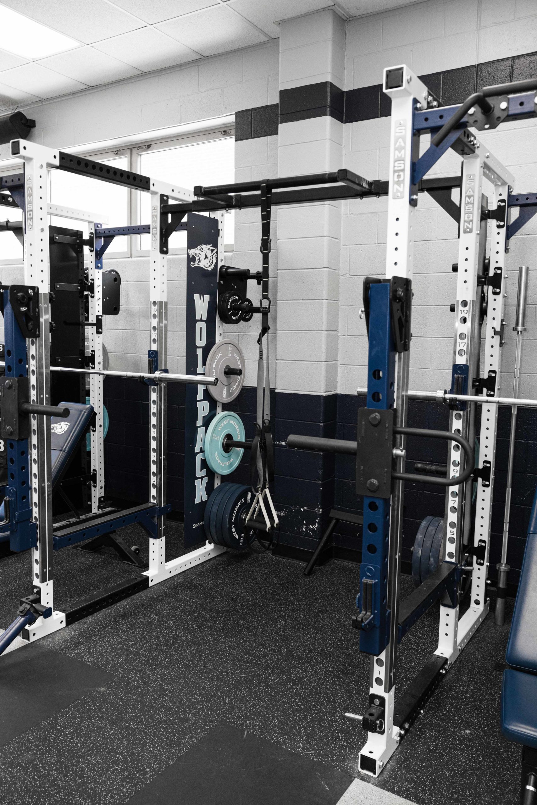 Building champions starts long before anyone takes the field or court. This new, New Jersey weight room installation paid dividends for the Wolfpack Football team in 2021 by bringing home some hardware. Their championship caliber facility features 10 Samson Flex-Rack Series flexed into Full Power Racks by customer request.