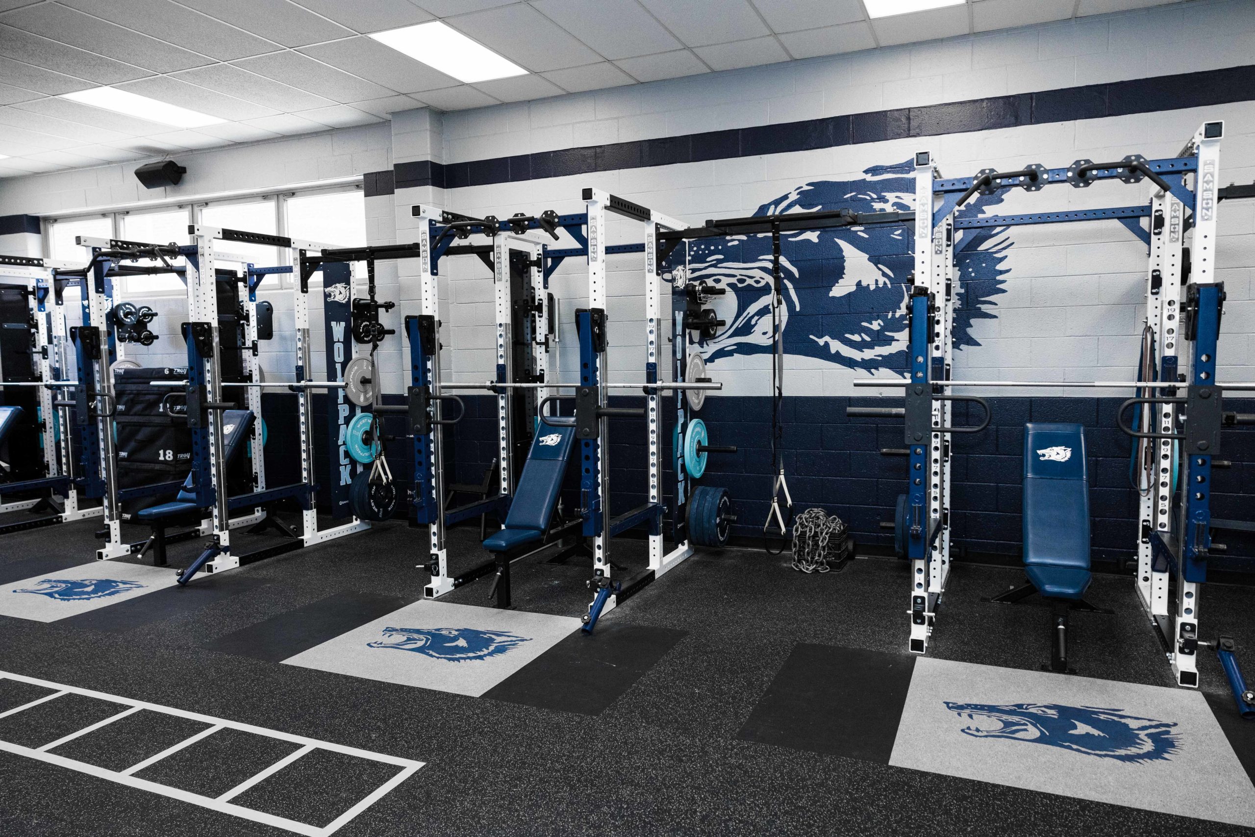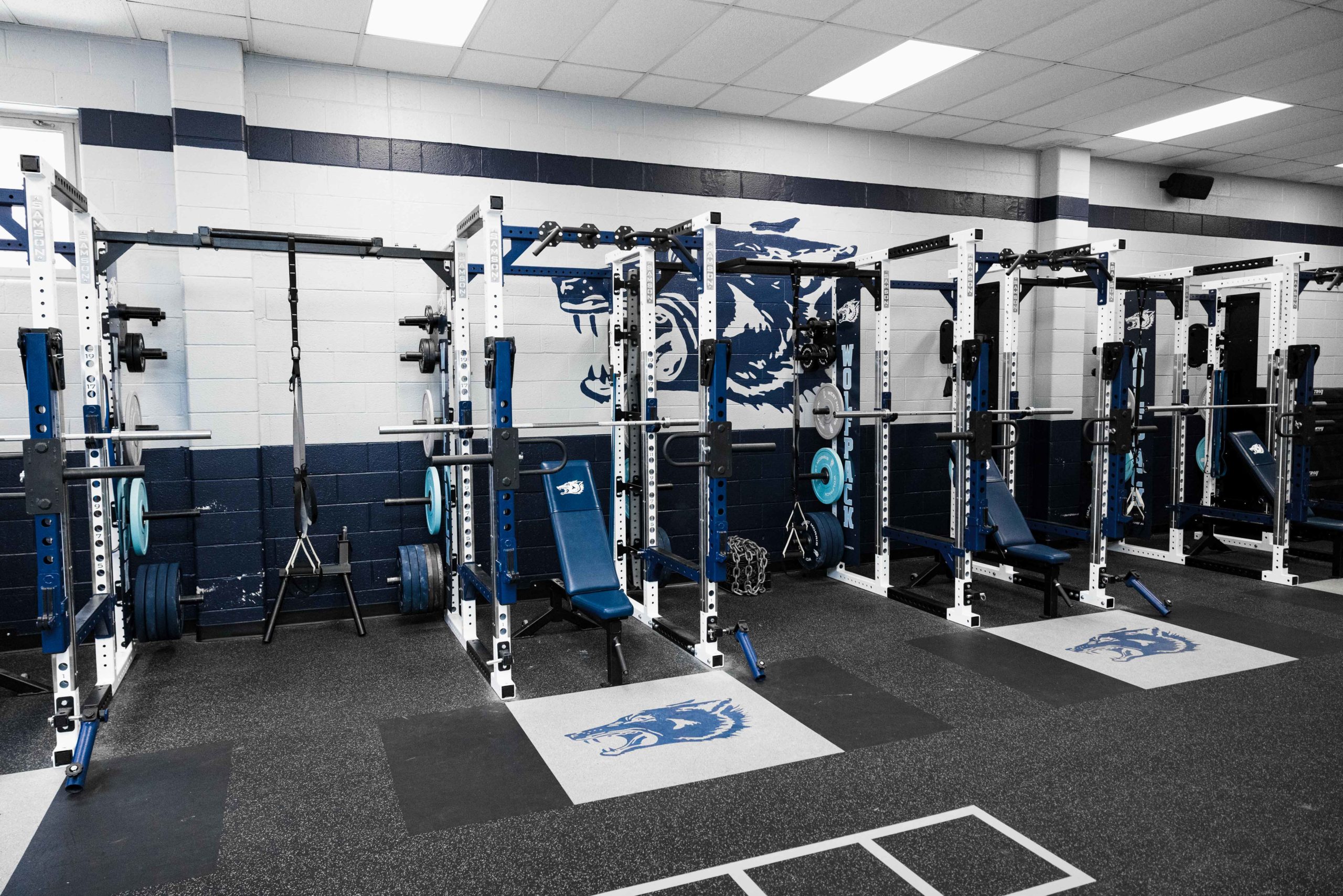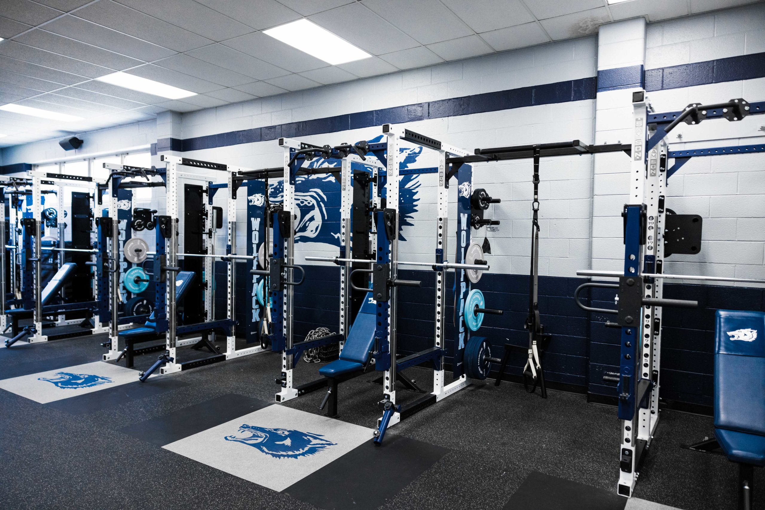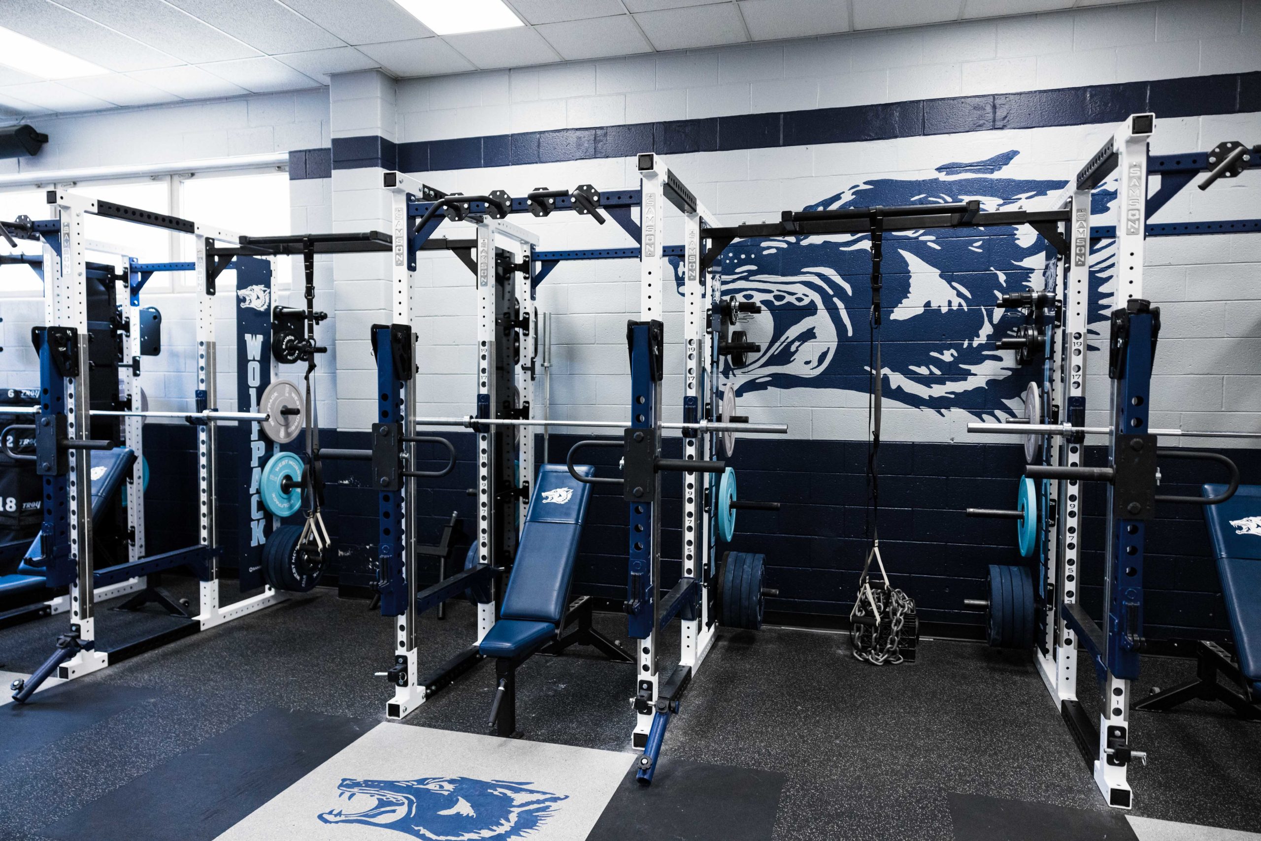 Building champions starts long before anyone takes the field or court. This new, New Jersey weight room installation paid dividends for the Wolfpack Football team in 2021 by bringing home some hardware. Their championship caliber facility features 10 Samson Flex-Rack Series flexed into Full Power Racks by customer request.